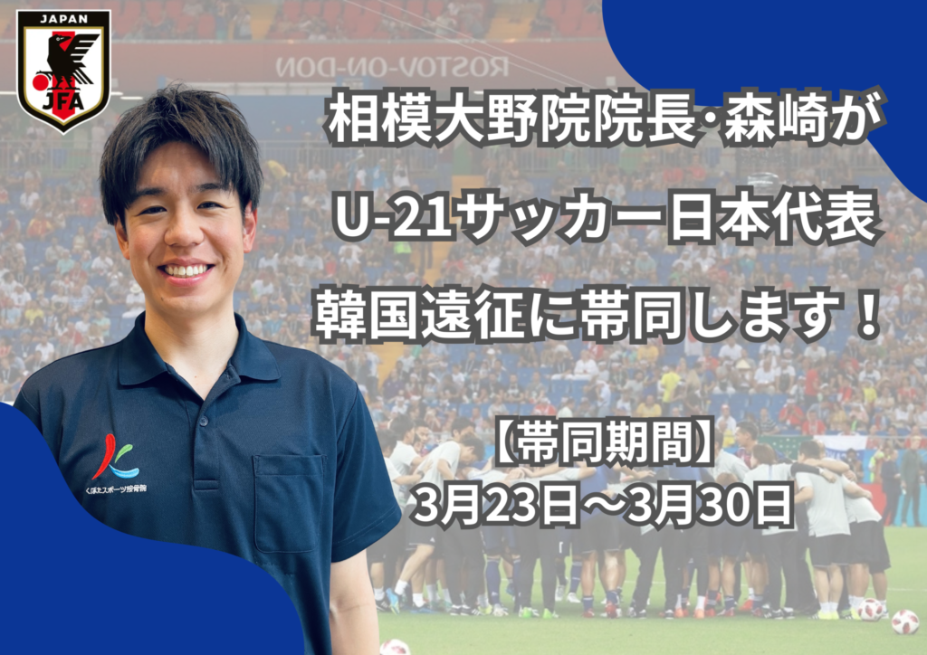 このたび、相模大野院 院長・森崎が、日本サッカー協会(JFA)によるU-21サッカー日本代表の韓国遠征に、トレーナーとして帯同することとなりました!