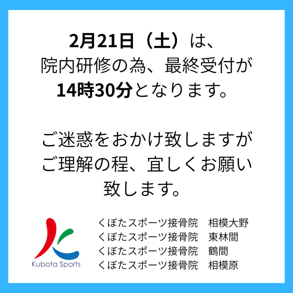 院内研修による診療時間変更のお知らせ